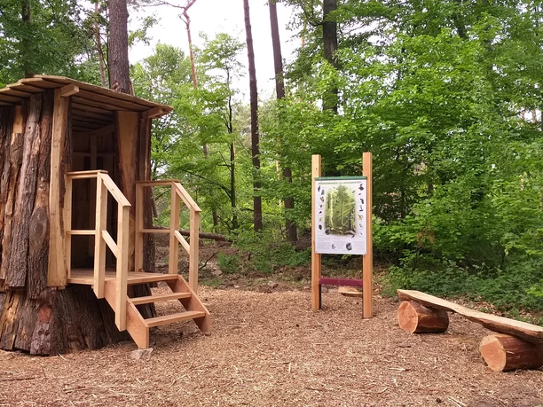 Een wandeling over het bos-avonturenpad is leuk en wekt nieuwsgierigheid op. De interactieve elementen zorgen voor veel kennis over het bos, de bomen en planten en de dieren die er leven. De interactieve stations zijn bijvoorbeeld een geurstation, een bosklaslokaal, een platform voor wilde zwijnen met uitzicht in het bos, een natuurherinnering en een inloopspechtentoren.