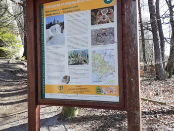 Die Elefantensteine (Sloní kameny, auch Weiße Steine, Bílé kameny) sind auffällig weiße Felsformationen, die von der Straße aus an der Steigung zum Bergsattel Jitravské sedlo zwischen den Städten Jablonné v Podještědí und Liberec zu sehen sind. Die Weißen Steine sind durch drei breite, fastsenkrechte Felsspalten in mehrere einzelne Felsblöcke geteilt, die eine kleine Felsenstadt bilden. Aufgrund ihrer Form werden sie Elefantensteine genannt, denn aus der Ferne sehen sie wie eine Gruppe von Elefanten aus. Die Felsen befinden sich auf dem sog. Kammweg, der interessante Orte der Gipfelregionen der Berge miteinander verbindet.