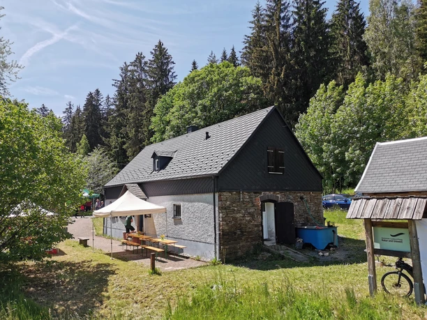 Die Mitarbeiter der Zuchtstation, die der Vogtlandkreis in Zusammenarbeit mit der TU Dresden und dem Pfaffengut Plauen betreibt, erklären die Entwicklungsschritte von den Glochidien bis zur fertigen Muschel. Vor der Flussperlmutterstation ist auch der Einstieg zum Erlebnisrundweg Flussperlmuschel, der auf rund 2 Km Länge mit Informationstafeln das Thema in der Natur vermittelt.