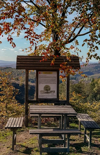 Nach einem kleinen Steinbruch erreichst du die (neu gepflanzte) Hubertusbucche mit einem kleinen Rastplatz. Hier verläßt Du den Rothaarsteig und gehst über den Zugangsweg hinunter nach Wilgersdorf.