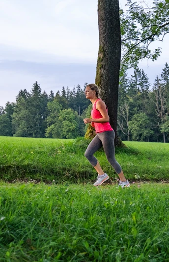 Die mittelschwere Stadtwald-Runde verläuft zuerst entlang der Schlierach und durch Miesbach. Bald geht es über Wanderwege durch den Stadtwald und kontinuierlich leicht ansteigend durch den Schopfgraben, vorbei am Märchenweiher bis hinauf zum Gut Lichtenau. Hier ist der höchste Punkt erreicht und auf einer wenig befahrenen Straße laufen wir zurück nach Schweinthal und schon bald durch Miesbach zurück zum Warmbad.