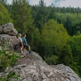 Vorbei an alten Steinbrüchen gelangt die Wegtrasse zum Schlittentaler Bachlauf. Zum wiederholten Mal heißt es für geraume Zeit bergauf wandern. Die Traumkulisse am Herberloch wartet. In der Mulde eines ehemaligen Steinbruchs, den man an seinem ockerfarbenen Gestein erkennen kann, liegt ein kleiner märchenhaft anmutender fast spiegelglatter See.